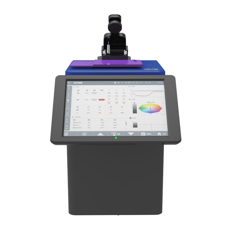 | 特性 | 1.塑胶电子、油漆油墨、纺织服装印染、印刷等行业等广泛应用。 2.10.5吋独立可旋转平板电脑,128G存储空间,摄像头实时取景。 3.仪器可侧面测量、朝上测量、朝下测量(使用配件)等多姿态放置测量。 4.敞开式透射仓,可测试厚度54mm透射样品。 5.自动温湿度补偿功能。 6.内置全光谱高寿命LED光源和氙灯光源,测试荧光样品有更好的识别度。 |